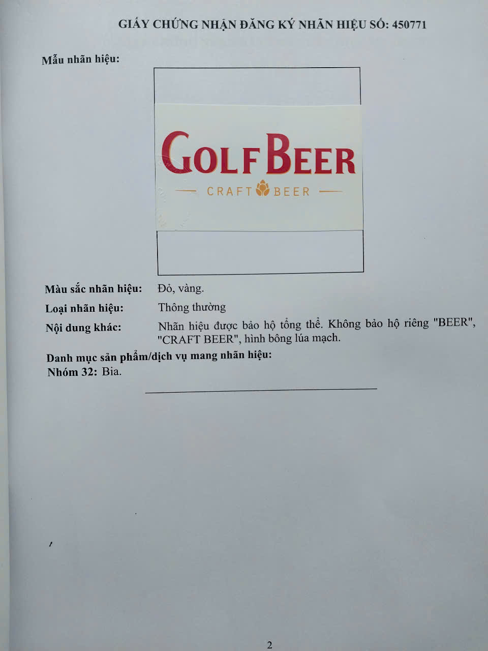 Ngay từ ngày đầu thành lập, GolfBeer đã xác định rõ định hướng xây dựng thương hiệu bài bản, bền vững và được pháp luật bảo hộ. Chúng tôi đã thực hiện đăng ký bảo hộ nhãn hiệu tại Cục Sở Hữu Trí Tuệ Việt Nam, không chỉ đối với tên thương hiệu chính “GolfBeer” mà còn cho các dòng sản phẩm độc quyền như: